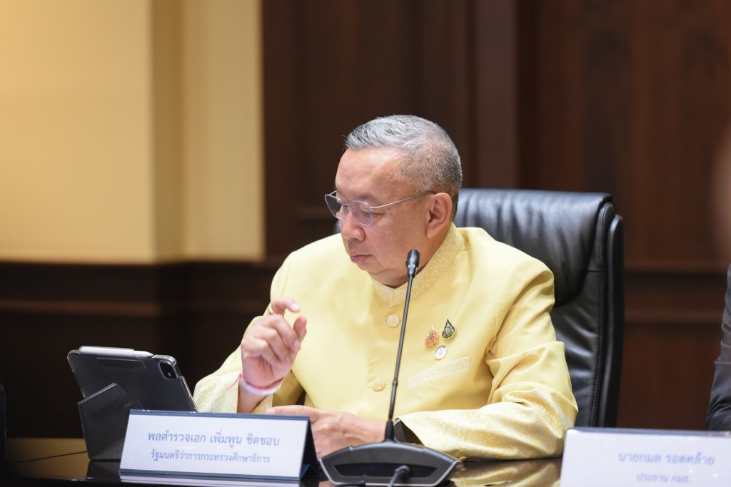 กระทรวงศึกษาธิการ – 6 ธันวาคม 2567 / พลตำรวจเอก เพิ่มพูน ชิดชอบ รัฐมนตรีว่าการกระทรวงศึกษาธิการ พร้อมด้วยนายกมล รอดคล้าย ประธานกรรมาธิการการศึกษา การอุดมศึกษา วิทยาศาสตร์ วิจัยและนวัตกรรม วุฒิสภา ร่วมประชุมหารือแลกเปลี่ยนความคิดเห็นด้านการศึกษา โดยมีนายสิริพงศ์ อังคสกุลเกียรติ ผู้ช่วยรัฐมนตรีประจำ ศธ. นายสุทิน แก้วพนา รองประธานกรรมาธิการฯ ตลอดจนผู้บริหารระดับสูง ศธ. คณะกรรมาธิการการศึกษาฯ วุฒิสภา เข้าร่วม ณ ห้องราชวัลลภ ชั้น 2 อาคารราชวัลลภ