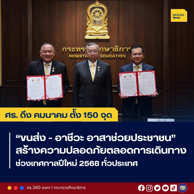 กระทรวงศึกษาธิการ – 9 ธันวาคม 2567 / พลตำรวจเอก เพิ่มพูน ชิดชอบ รัฐมนตรีว่าการกระทรวงศึกษาธิการ เป็นประธานและร่วมเป็นสักขีพยานพิธีลงนามในบันทึกความตกลงว่าด้วยความร่วมมือในการดำเนินโครงการบูรณาการตั้งจุดบริการอำนวยความสะดวก เพื่อความปลอดภัยในการเดินทาง ช่วงเทศกาลปีใหม่และเทศกาลสงกรานต์ พ.ศ. 2568