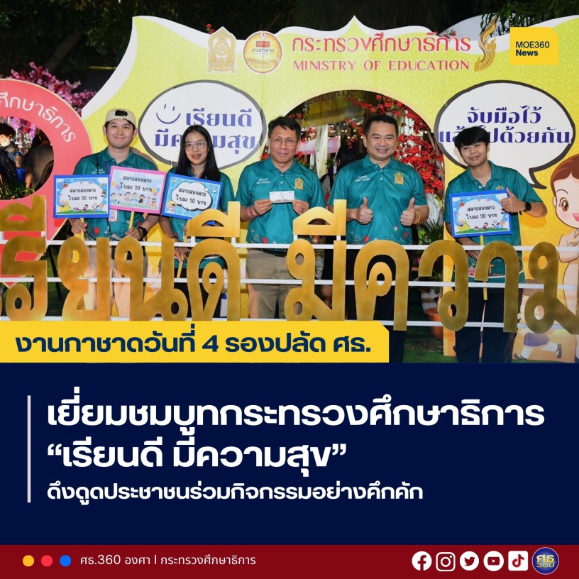 โดยกระทรวงศึกษาธิการได้เปิดบูทกิจกรรม “เรียนดี มีความสุข” และออกร้านงานกาชาด ซึ่งจัดขึ้นเป็นวันที่ 4 ได้รับความสนใจอย่างมากจากผู้บริหาร ข้าราชการ บุคลากรกระทรวงศึกษาธิการ น้อง ๆ นักเรียนนักศึกษา รวมถึงประชาชนทั่วไปอย่างคับคั่ง