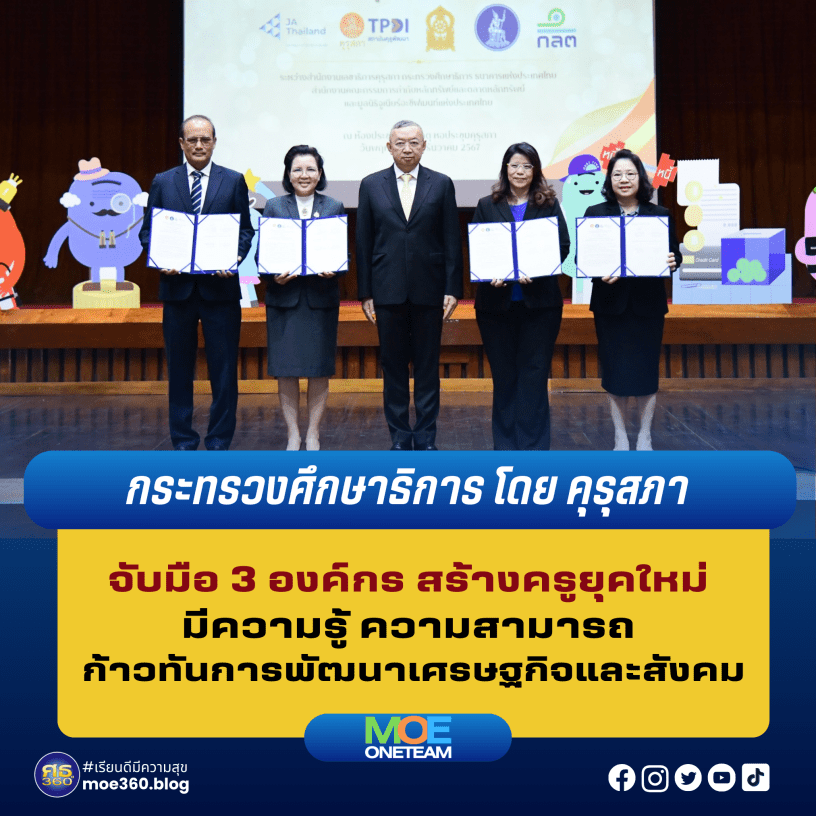 19 ธันวาคม 2567 – พลตำรวจเอก เพิ่มพูน ชิดชอบ รัฐมนตรีว่าการกระทรวงศึกษาธิการ เป็นประธานในพิธีลงนามบันทึกความเข้าใจความร่วมมือทางวิชาการโครงการส่งเสริมการศึกษาวิจัยและพัฒนาการจัดการเรียนรู้เกี่ยวกับความฉลาดรู้ทางการเงิน (Financial Literacy) ระหว่าง สำนักงานเลขาธิการคุรุสภากระทรวงศึกษาธิการ กับ ธนาคารแห่งประเทศไทย สำนักงานคณะกรรมการกำกับหลักทรัพย์และตลาดหลักทรัพย์ (ก.ล.ต.) และมูลนิธิจูเนียร์อะชีฟเมนท์แห่งประเทศไทย โดยมี ผศ.ดร.อมลวรรณ วีระธรรมโม เลขาธิการคุรุสภา นางสาวดารณี แซ่จู ผู้ช่วยผู้ว่าการ สายกำกับระบบการชำระเงินและคุ้มครองผู้ใช้บริการทางการเงิน จากธนาคารแห่งประเทศไทย นางสาวอาชินี ปัทมะสุคนธ์ ผู้ช่วยเลขาธิการ สายสื่อสารองค์กร จากสำนักงานคณะกรรมการกำกับหลักทรัพย์ และตลาดหลักทรัพย์ (ก.ล.ต.) และนายธาดา เศวตศิลา ประธานมูลนิธิจูเนียร์อะชีฟเมนท์แห่งประเทศไทย เป็นผู้แทนลงนาม ณ หอประชุมคุรุสภา กระทรวงศึกษาธิการ