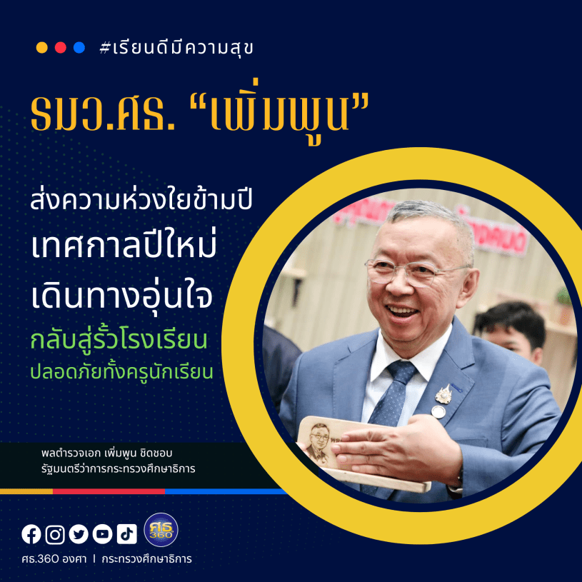 กระทรวงศึกษาธิการให้ความสำคัญกับความปลอดภัย โดยเฉพาะในช่วง “10 วันอันตราย” ซึ่งรัฐบาลได้กำหนดให้เฝ้าระวังเป็นพิเศษ เนื่องจากเป็นช่วงเวลาที่มีการเดินทางจำนวนมากและมีอุบัติเหตุเกิดขึ้นได้ง่าย ทั้งจากการขับขี่บนท้องถนนและกิจกรรมต่าง ๆ ที่เกี่ยวข้องกับเทศกาล ขอให้ระมัดระวังความปลอดภัยในทุกด้าน โดยเฉพาะการใช้ยานพาหนะบนท้องถนน ควรมีน้ำใจกับเพื่อนร่วมทาง ปฏิบัติตามกฎจราจรอย่างเคร่งครัด ตรวจสอบสภาพรถยนต์ให้พร้อมก่อนออกเดินทาง สวมใส่หมวกกันน็อกและใช้เข็มขัดนิรภัย หากเดินทางไกลควรพักผ่อนให้เพียงพอ