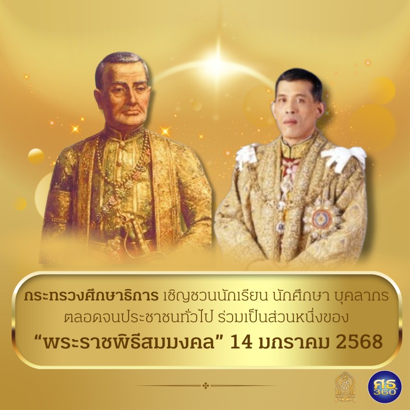รัฐบาล และกระทรวงศึกษาธิการ ขอเชิญชวนนักเรียน นักศึกษา บุคลากร ตลอดจนประชาชนทั่วไป ร่วมกิจกรรมงานเฉลิมพระเกียรติพระบาทสมเด็จพระเจ้าอยู่หัว เนื่องในโอกาส “พระราชพิธีสมมงคล” พระชนมายุเท่าพระบาทสมเด็จพระพุทธยอดฟ้าจุฬาโลกมหาราช (รัชกาลที่ 1) “The Auspicious Occasion of His Majesty King Maha Vajiralongkorn Phra Vajiraklaochaoyuhua Attaining the Same Age as His Majesty King Buddha Yodfa Chulalok the Great (Rama I)” สมเด็จพระปฐมบรมกษัตริยาธิราชแห่งพระราชวงศ์จักรี พุทธศักราช 2568