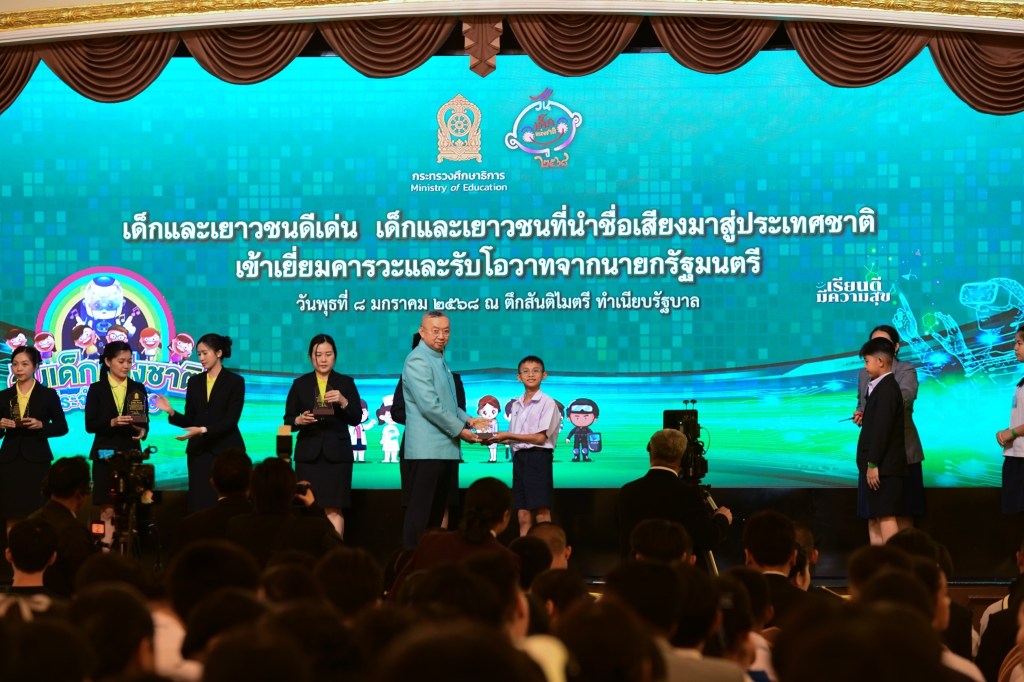 รมว.ศธ. กล่าวว่า เนื่องในวันเด็กแห่งชาติ ประจำปี 2568 ศธ.ได้นำเด็กและได้รับการคัดเลือกจากทุกสังกัดทั่วประเทศ จำนวน 1,292 คน เข้าเยี่ยมคารวะและรับโอวาทจากนางสาวแพทองธาร ชินวัตร นายกรัฐมนตรี พร้อมทั้งมอบโล่รางวัลให้แก่น้อง ๆ ซึ่งเป็นเด็กและเยาวชนที่คัดเลือกจาก 17 หน่วยงาน อาทิ กระทรวงกลาโหม กระทรวงการอุดมศึกษา วิทยาศาสตร์ วิจัยและนวัตกรรม สำนักงานคณะกรรมการการศึกษาขั้นพื้นฐาน สำนักงานคณะกรรมการการอาชีวศึกษา กรมส่งเสริมการเรียนรู้ สำนักงานคณะกรรมการส่งเสริมการศึกษาเอกชน สำนักงานตำรวจแห่งชาติ กรมกิจการเด็กและเยาวชน กรมพินิจคุ้มครองเด็กและเยาวชน กรมส่งเสริมการปกครองท้องถิ่น มหาวิทยาลัยการกีฬาแห่งชาติ สถาบันบัณฑิตพัฒนศิลป์ ธนาคารออมสิน สภาสังคมสงเคราะห์แห่งประเทศไทย ในพระบรมราชูปถัมภ์ สภาสมาคมสตรีแห่งชาติ ในพระบรมราชินูปถัมภ์ มูลนิธิร่วมจิตต์น้อมเกล้าฯ เพื่อเยาวชน ในพระบรมราชินูปถัมภ์ และกรุงเทพมหานคร