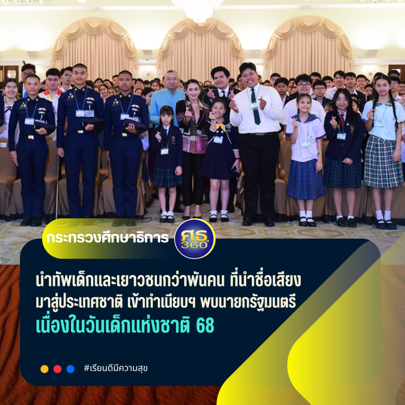รมว.ศธ. กล่าวว่า เนื่องในวันเด็กแห่งชาติ ประจำปี 2568 ศธ.ได้นำเด็กและได้รับการคัดเลือกจากทุกสังกัดทั่วประเทศ จำนวน 1,292 คน เข้าเยี่ยมคารวะและรับโอวาทจากนางสาวแพทองธาร ชินวัตร นายกรัฐมนตรี พร้อมทั้งมอบโล่รางวัลให้แก่น้อง ๆ ซึ่งเป็นเด็กและเยาวชนที่คัดเลือกจาก 17 หน่วยงาน อาทิ กระทรวงกลาโหม กระทรวงการอุดมศึกษา วิทยาศาสตร์ วิจัยและนวัตกรรม สำนักงานคณะกรรมการการศึกษาขั้นพื้นฐาน สำนักงานคณะกรรมการการอาชีวศึกษา กรมส่งเสริมการเรียนรู้ สำนักงานคณะกรรมการส่งเสริมการศึกษาเอกชน สำนักงานตำรวจแห่งชาติ กรมกิจการเด็กและเยาวชน กรมพินิจคุ้มครองเด็กและเยาวชน กรมส่งเสริมการปกครองท้องถิ่น มหาวิทยาลัยการกีฬาแห่งชาติ สถาบันบัณฑิตพัฒนศิลป์ ธนาคารออมสิน สภาสังคมสงเคราะห์แห่งประเทศไทย ในพระบรมราชูปถัมภ์ สภาสมาคมสตรีแห่งชาติ ในพระบรมราชินูปถัมภ์ มูลนิธิร่วมจิตต์น้อมเกล้าฯ เพื่อเยาวชน ในพระบรมราชินูปถัมภ์ และกรุงเทพมหานคร