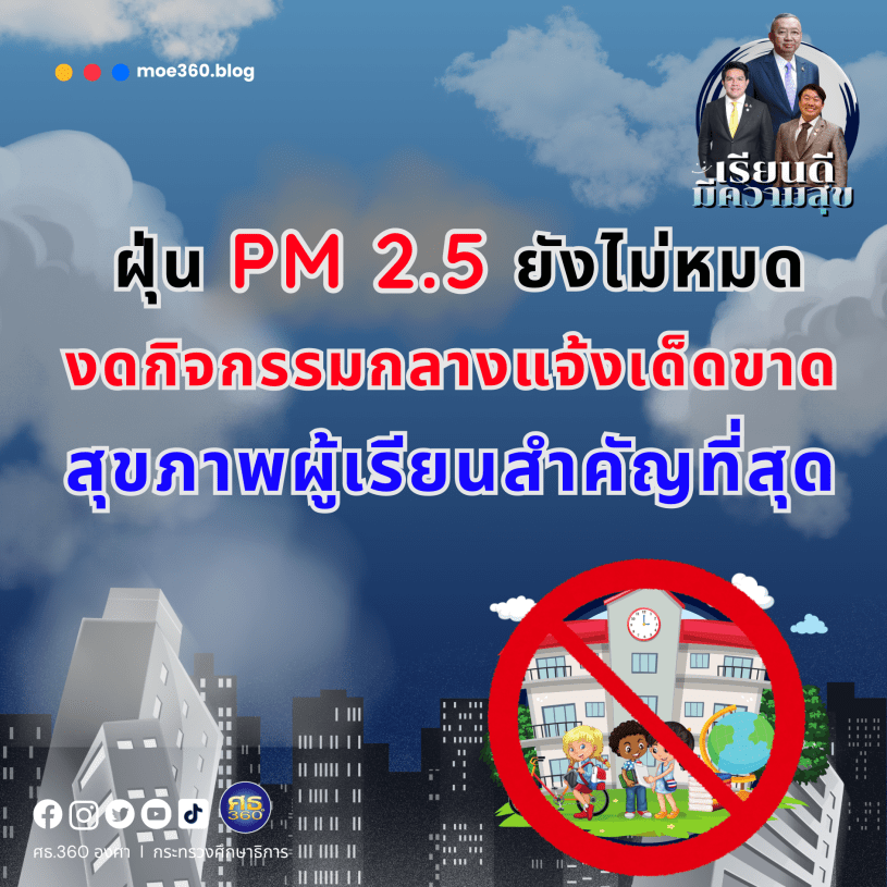 23 มกราคม 2568 – นายสิริพงศ์ อังคสกุลเกียรติ โฆษกกระทรวงศึกษาธิการ เน้นย้ำให้สถานศึกษาในสังกัดทั่วประเทศงดกิจกรรมกลางแจ้งในช่วงสถานการณ์ฝุ่นละออง PM 2.5 มีค่าความเข้มข้นสูงถึงระดับวิกฤตสีแดงเข้ม โดยเฉพาะในพื้นที่ที่ได้รับผลกระทบจากค่าฝุ่นที่เกินเกณฑ์มาตรฐาน ซึ่งอาจส่งผลกระทบต่อสุขภาพของนักเรียน ครูและบุคลากรทางการศึกษา หากผู้ปกครองกังวลใจสามารถแจ้งได้ที่เพจ “ศธ.360 องศา“