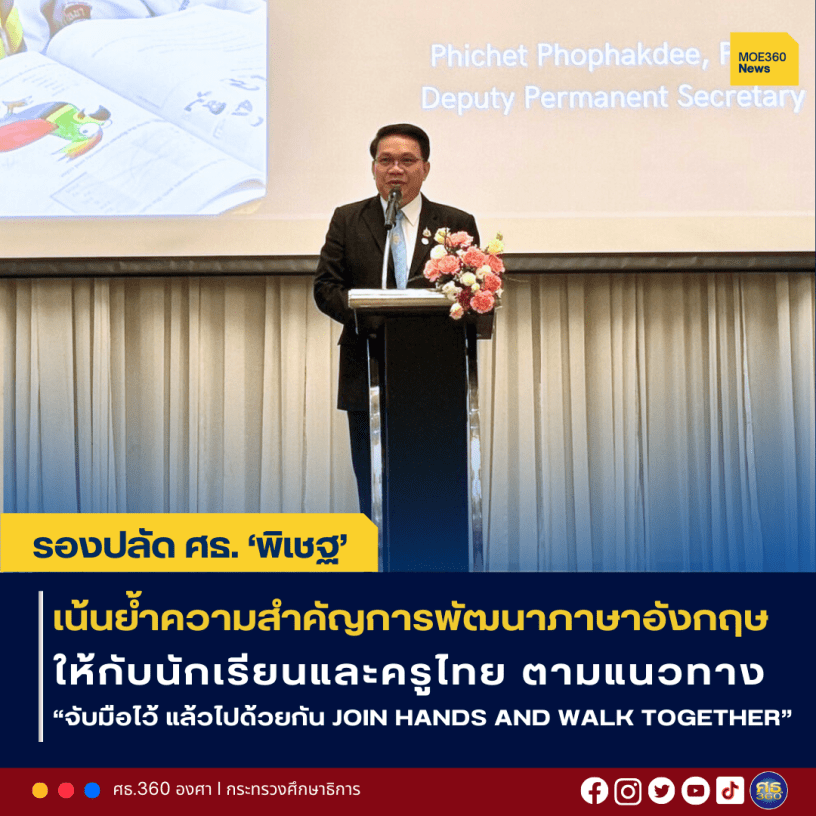 24 มกราคม 2568 – นายสุเทพ แก่งสันเทียะ ปลัดกระทรวงศึกษาธิการ มอบหมายให้ นายพิเชฐ โพธิ์ภักดี รองปลัดกระทรวงศึกษาธิการ เข้าร่วมพิธีเปิดการประชุมวิชาการนานาชาติของสมาคมครูผู้สอนภาษาอังกฤษแห่งประเทศไทยฯ ครั้งที่ 44 (44th Thailand TESOL International Conference) หัวข้อ “Exploring the New Frontiers of ELT for a Better Tomorrow: Innovative Curriculum, Pedagogy, and Assessment” โดยมีวัตถุประสงค์เพื่อส่งเสริมและแลกเปลี่ยนองค์ความรู้ทางด้านการสอนภาษาอังกฤษในหลากหลายมิติ โดยเฉพาะหลักสูตรนวัตกรรมการสอน และการประเมินผล โดยมีผู้ลงทะเบียนเข้าร่วมการประชุมฯ ประมาณ 600 คน จาก 30 ประเทศทั่วโลก ณ Swissotel Bangkok
