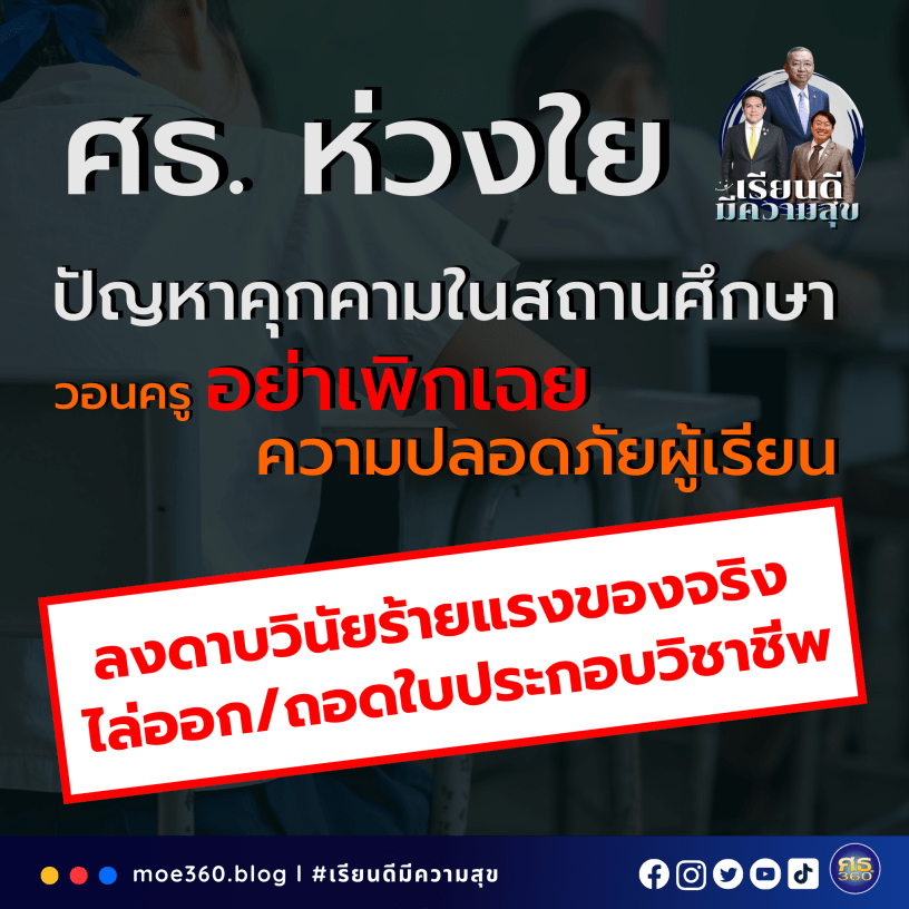 “กระทรวงศึกษาธิการจะไม่ปล่อยผ่านปัญหาล่วงละเมิดทางเพศในสถานศึกษา สภาพแวดล้อมการเรียนรู้ต้องปลอดภัยส่งเสริมให้เด็กเติบโตไปอย่างมีความสุข และขอย้ำชัดเจนว่าหากพบการกระทำผิดจะลงโทษวินัยร้ายแรงอย่างถึงที่สุด” โฆษก ศธ. กล่าว