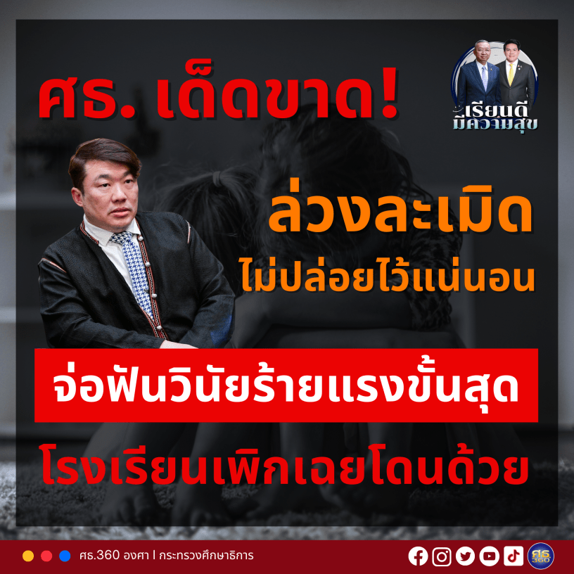 “เราจะเดินหน้ายกระดับมาตรการป้องกันและปราบปรามการล่วงละเมิดทางเพศในสถานศึกษาอย่างจริงจัง เพื่อสร้างความมั่นใจให้กับผู้ปกครองและนักเรียน ครูต้องเป็นพื้นที่เซฟโซนของผู้เรียนสร้างสภาพแวดล้อมการเรียนรู้ที่ปลอดภัยสำหรับเด็กทุกคนในระบบการศึกษาไทย อยู่ในรั้วโรงเรียนอย่างอุ่นใจกลับบ้านไปอย่างมีความสุข” โฆษกศธ. กล่าว