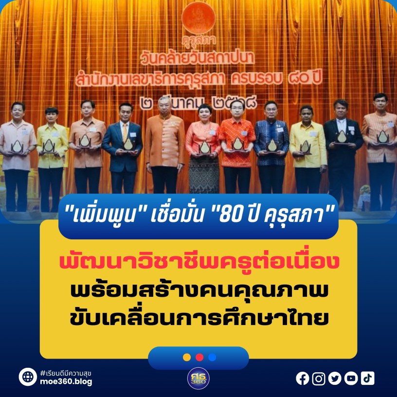 2 มีนาคม 2568 / พลตำรวจเอก เพิ่มพูน ชิดชอบ รัฐมนตรีว่าการกระทรวงศึกษาธิการ เป็นประธานในพิธีวันคล้ายวันสถาปนาสำนักงานเลขาธิการคุรุสภา ครบรอบ 80 ปี โดยมี นายสุเทพ แก่งสันเทียะ ปลัด ศธ. นางอมลวรรณ วีระธรรมโม เลขาธิการคุรุสภา ตลอดจนบริหารระดับสูง ศธ. คณะกรรมการคุรุสภา คณะกรรมการมาตรฐานวิชาชีพ ผู้บริหารสำนักงานเลขาธิการคุรุสภา พนักงานเจ้าหน้าที่ของสำนักงานเลขาธิการคุรุสภา ทั้งส่วนกลาง ส่วนภูมิภาค ให้การต้อนรับและเข้าร่วมกว่า 400 คน ณ ห้องประชุมบุณยเกตุ อาคารหอประชุมคุรุสภา