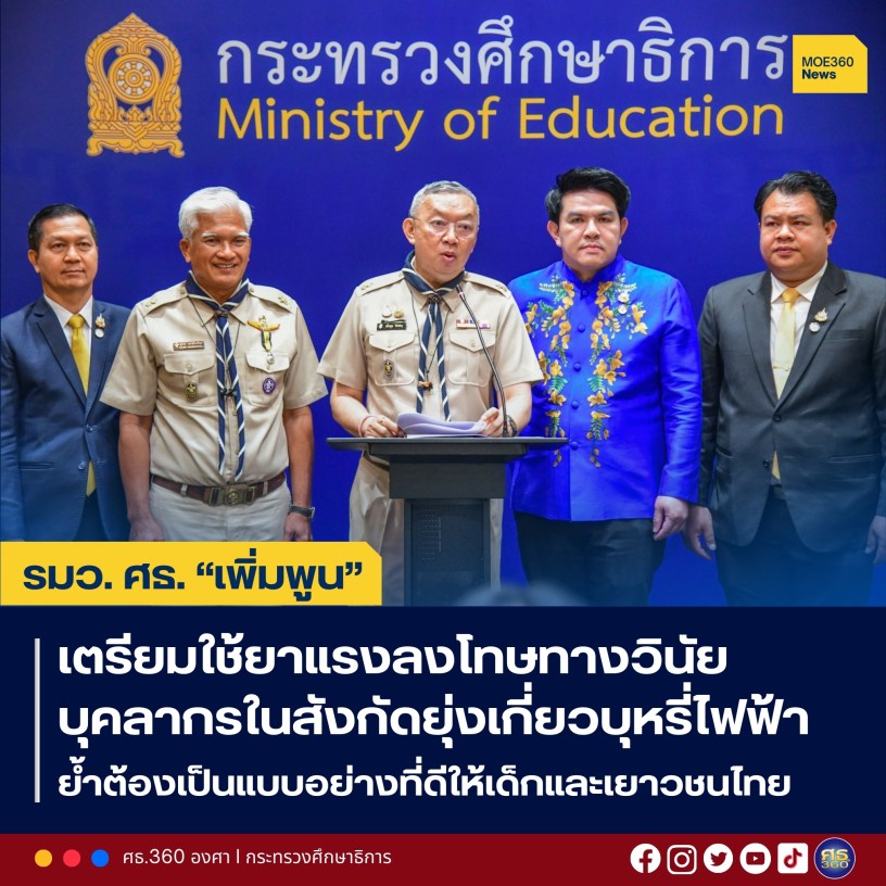 รมว.ศธ. “เพิ่มพูน” เป็นประธานการประชุมประสานภารกิจ ครั้งที่ 7/2568 กำหนดแผนและมาตรการรับมือป้องกันปัญหาบุหรี่ไฟฟ้า คาดโทษทางวินัยกับบุคลากรในสังกัดที่เข้าไปยุ่งเกี่ยวกับบุหรี่ไฟฟ้า เพื่อเป็นแบบอย่างที่ดีให้กับเยาวชนไทย วางแนวทางการแก้ไขปัญหาการใช้ความรุนแรงในเยาวชน ใช้การแนะแนวและจิตวิทยาเด็กมาช่วยเสริม เผยความก้าวหน้าการขยายผลการอบรมการสร้างและพัฒนาข้อสอบ โดยการใช้องค์ความรู้จาก PISA มีผู้ผ่านอบรมแล้วกว่า 1.5 แสนคน เร่งแก้ไขปัญหาเด็กและเยาวชนหลุดออกจากระบบการศึกษาให้กลับเข้าสู่ระบบการศึกษาอย่างต่อเนื่อง พร้อมผลิตและพัฒนากำลังคนอาชีวะสมรรถนะสูงเพื่อรองรับอัตรากำลังที่ขาดแคลน ตามความต้องการของตลาดแรงงาน ตลอดจนเผยผลสำรวจนิด้าโพล กระทรวงศึกษาธิการ สร้างความพึงพอใจในการดำเนินงานให้ประชาชนไทย เป็นอันดับที่ 2 ของทุกกระทรวง