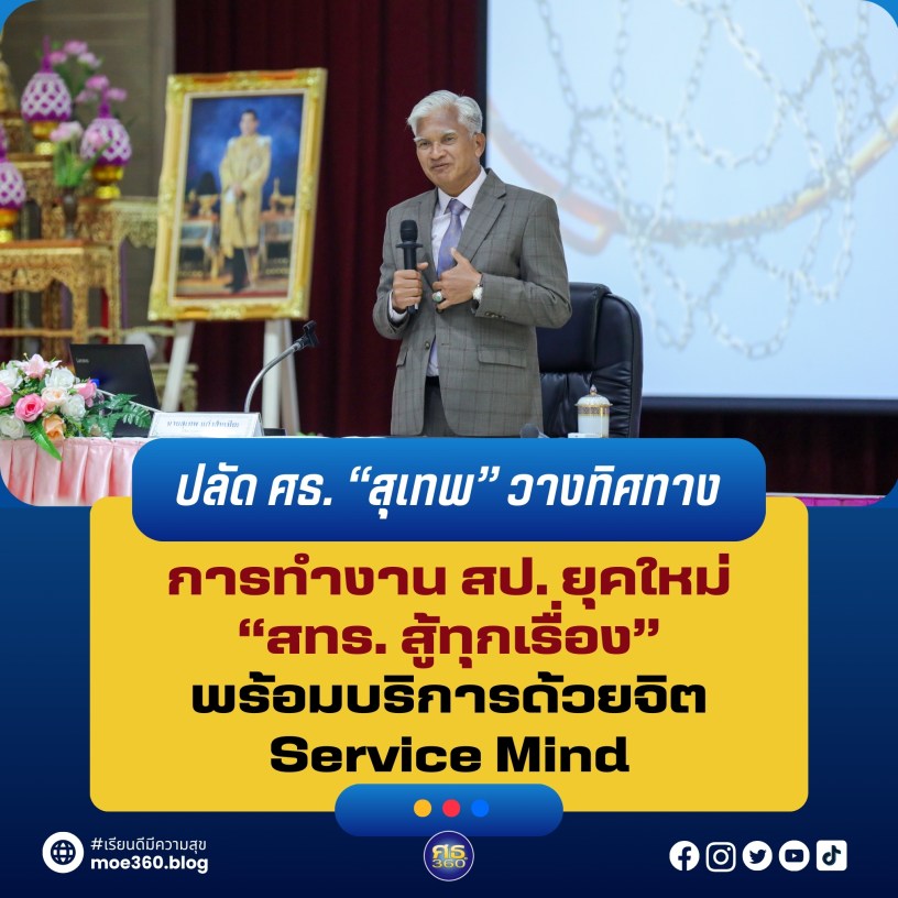 “การทำงานในสำนักงานยุคใหม่ ไม่ได้ต้องการให้ทำสิ่งที่ยิ่งใหญ่เสมอไป แต่ขอให้ทุกคนมุ่งมั่นทำสิ่งเล็ก ๆ ด้วยความตั้งใจและเต็มที่ เพื่อให้ผลงานออกมาอย่างมีคุณภาพ การทำงานในองค์กรไม่ใช่แค่การทำงานตามหน้าที่ แต่ต้องมีการพัฒนาทักษะและความสามารถในการทำงานร่วมกัน รวมถึงการใช้เทคโนโลยีให้เกิดประโยชน์สูงสุด ซึ่งการพัฒนาตนเองอย่างต่อเนื่องจะทำให้ทุกคนเติบโตและประสบความสำเร็จในงานที่ทำ โดยไม่ลืมที่จะเปิดใจรับสิ่งใหม่ ๆ และเรียนรู้จากประสบการณ์ของผู้อื่น ขอให้ทุกคนมุ่งมั่นพัฒนาตนเองเพื่อสร้างความสำเร็จให้กับตัวเองและสำนักงานปลัดกระทรวงศึกษาธิการของพวกเราต่อไป“