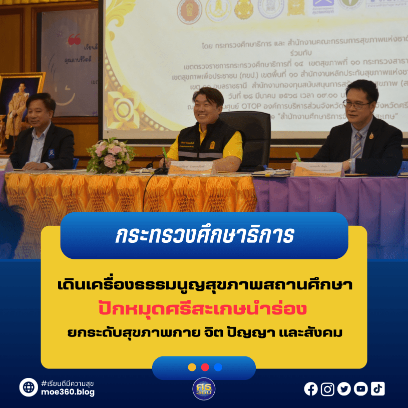 28 มีนาคม 2568 – นายสิริพงศ์ อังคสกุลเกียรติ ผู้ช่วยรัฐมนตรีประจำกระทรวงศึกษาธิการ เป็นประธานเปิดการประชุมเชิงปฏิบัติการเสริมศักยภาพแกนนำขับเคลื่อนธรรมนูญสุขภาพสถานศึกษาในสถานศึกษานำร่อง เขตตรวจราชการกระทรวงศึกษาธิการ ที่ 14 และร่วมลงนามบันทึกข้อตกลงความร่วมมือพัฒนาและขับเคลื่อนระบบสุขภาพในสถานศึกษา ซึ่งมีครูและนักเรียนจากโรงเรียน 15 แห่ง จำนวน 150 คน เข้าร่วม ณ ห้องประชุมศูนย์ OTOP องค์การบริหารส่วนจังหวัดศรีสะเกษ จังหวัดศรีสะเกษ