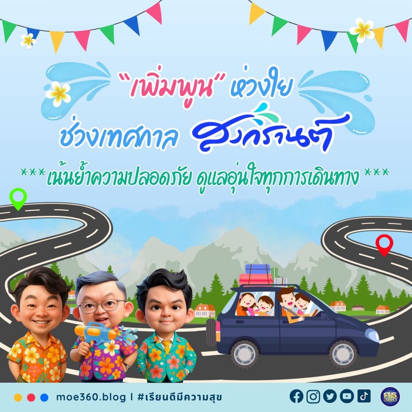 โฆษก ศธ. กล่าวว่า เทศกาลสงกรานต์มาเยือนอีกครั้ง ผู้คนต่างเดินทางกลับภูมิลำเนากันอย่างคึกคักเพื่อใช้เวลากับครอบครัวและมีความสุขกับเทศกาลรื่นเริงด้วยรอยยิ้มที่ชุ่มฉ่ำ พล.ต.อ.เพิ่มพูน ชิดชอบ รัฐมนตรีว่าการกระทรวงศึกษาธิการ ได้ให้ความสำคัญกับความปอดภัยและคอยเฝ้ามองด้วยความห่วงใย โดยเฉพาะกับนักเรียน ผู้ปกครอง ครูและบุคลากรทางการศึกษา ที่กำลังเตรียมตัวท่องเที่ยวในช่วงวันหยุดยาวนี้ ขอให้ใส่ใจกับความปลอดภัยทั้งของตนเองและคนรอบข้าง และขอความร่วมมือสถานศึกษาทั่วประเทศร่วมรณรงค์ความปลอดภัยในทุกรูปแบบ ไม่ว่าจะเป็นการใช้ยานพาหนะโดยรักษากฎจราจรการ สามใส่หมวกกันน็อก เมาไม่ขับ หรือการไม่ใช้โทรศัพท์ขณะขับรถ เพราะช่วงเวลาแห่งความสุขไม่ควรมีอุบัติเหตุเกิดเพียงเพราะความประมาท