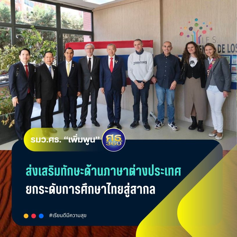 เมื่อวันที่ 23 เมษายน 2568 เวลา 11.30 น. พลตำรวจเอก เพิ่มพูน ชิดชอบ รัฐมนตรีว่าการกระทรวงศึกษาธิการ เดินทางไปศึกษาดูงานและเยี่ยมชมการจัดการเรียนการสอนของโรงเรียนมัธยมศึกษา Instituto de Educación Secundaria (IES) Avenida de los Toreros โดยมี Mr. César Naranjo Escobar ผู้อำนวยการโรงเรียน ครู และเจ้าหน้าที่ของโรงเรียนดังกล่าวให้การต้อนรับ และมีผู้บริหารระดับสูงของกระทรวงศึกษาธิการ ว่าที่ร้อยตรี ธนุ วงษ์จินดา เลขาธิการคณะกรรมการการศึกษาขั้นพื้นฐาน พลเอก อภิชาติ อุ่นอ่อน ประธานคณะทำงานฝ่ายอำนวยการของรัฐมนตรีว่าการกระทรวงศึกษาธิการ ผู้แทนสถานเอกอัครราชทูต ณ กรุงมาดริด ผู้แทนสำนักความสัมพันธ์ต่างประเทศ สำนักงานปลัดกระทรวงศึกษาธิการ และผู้เกี่ยวข้อง เข้าร่วมศึกษาดูงาน ณ กรุงมาดริด ราชอาณาจักรสเปน