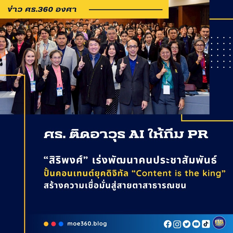 12 มิถุนายน 2568 / นายสิริพงศ์ อังคสกุลเกียรติ ผู้ช่วยรัฐมนตรีประจำกระทรวงศึกษาธิการ และโฆษกกระทรวงศึกษาธิการ ได้รับมอบหมายจาก พลตำรวจเอก เพิ่มพูน ชิดชอบ รัฐมนตรีว่าการกระทรวงศึกษาธิการ เป็นประธานในพิธีเปิดการอบรมเชิงปฏิบัติการเพื่อพัฒนาศักยภาพบุคลากรด้านการประชาสัมพันธ์ ประจำปีงบประมาณ พ.ศ. 2568 หลักสูตร “พลิกโฉมการประชาสัมพันธ์ด้วย AI” (Transforming Public Relations with AI) พร้อมด้วยนางสาวนวลพรรณ วรรณสุธี ผู้อำนวยการสำนักอำนวยการ สป. โดยมีบุคลากรที่ปฏิบัติงานด้านประชาสัมพันธ์ขององค์กรหลักและหน่วยงานในกำกับ ศธ. กว่า 150 คน เข้าร่วม ระหว่างวันที่ 12 – 14 มิถุนายน 2568 ณ โรงแรมเดอะ ทวิน ทาวเวอร์ กรุงเทพฯ