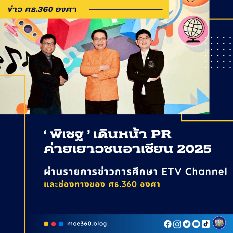 12 มิถุนายน 2568 /นายพิเชฐ โพธิ์ภักดี รองปลัดกระทรวงศึกษาธิการ พร้อมด้วย นายกฤษฎ์ชัย สมสมาน ผู้อำนวยการ ศูนย์ระดับภูมิภาคว่าด้วยสะเต็มศึกษาของซีมีโอ (SEAMEO STEM-ED) และนายธีระเดช เจียรสุขสกุล ผู้อำนวยการสถาบันส่งเสริม การสอนวิทยาศาสตร์และเทคโนโลยี (สสวท.) เข้าร่วมบันทึกเทปรายการข่าวการศึกษา ณ ETV Channel ศูนย์เทคโนโลยีดิจิทัลเพื่อส่งเสริมการเรียนรู้ เพื่อประชาสัมพันธ์การเป็นเจ้าภาพของกระทรวงศึกษาธิการในฐานะประธานด้านการศึกษาอาเซียนเพื่อจัดกิจกรรมค่ายเยาวชนอาเซียน ประจำปี 2568 หัวข้อ “AI แฮกกาธอนเพื่อความยั่งยืนสีเขียว” (ASEAN Youth Camp 2025: AI Hackathon for Green Sustainability – AYC2025) ระหว่างวันที่ 17 – 20 มิถุนายน 2568 ณ องค์การพิพิธภัณฑ์วิทยาศาสตร์แห่งชาติ จังหวัดปทุมธานี