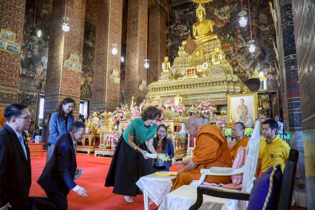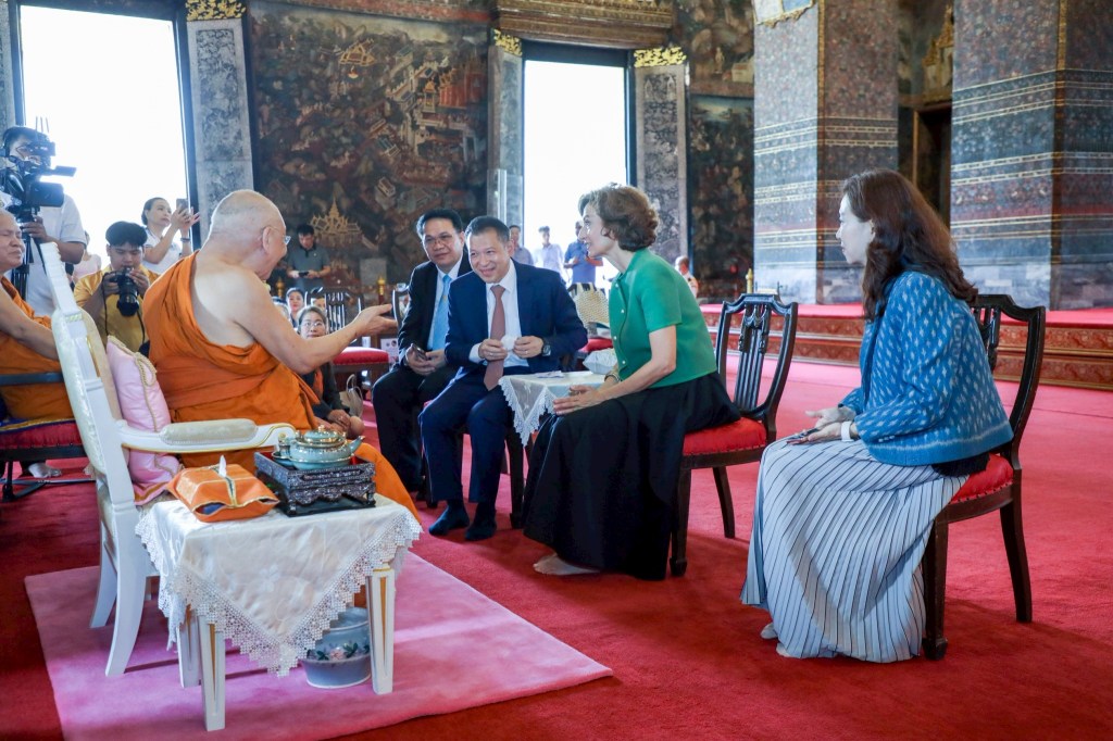 นอกจากนี้ นายพิเชฐ โพธิ์ภักดี รองปลัดกระทรวงศึกษาธิการ ได้นำผู้อำนวยการใหญ่องค์การ UNESCO และคณะ เดินทางไปวัดพระเชตุพนวิมลมังคลารามราชวรมหาวิหาร (วัดโพธิ์) เพื่อเยี่ยมชมจารึกวัดโพธิ์ซึ่งได้รับการขึ้นทะเบียนเป็นมรดกความจำทรงจำแห่งโลก เมื่อปี พ.ศ. 2554 รวมทั้งการนวดแผนโบราณวัดโพธิ์ซึ่งได้รับการขึ้นทะเบียนเป็นมรดกภูมิปัญญาทางวัฒนธรรมที่จับต้องไม่ได้ของมนุษยชาติขององค์การยูเนสโก เมื่อปี พ.ศ. 2562 จึงนับเป็นโอกาสอันดีที่ผู้อำนวยการใหญ่องค์การยูเนสโกได้ไปเยือนวัดโพธิ์ ซึ่งเป็นแหล่งมรดกภูมิปัญญาทางวัฒนธรรมที่สำคัญของประเทศไทย ตลอดจนเยี่ยมชมงานแสดงทางวัฒนธรรม UNESCO x SACIT x ICONCRAFT เพื่อต่อยอดเครือข่ายเมืองสร้างสรรค์และยกระดับมูลค่าหัตถศิลป์ส่งต่อแรงบันดาลใจสู่เวทีระดับโลก