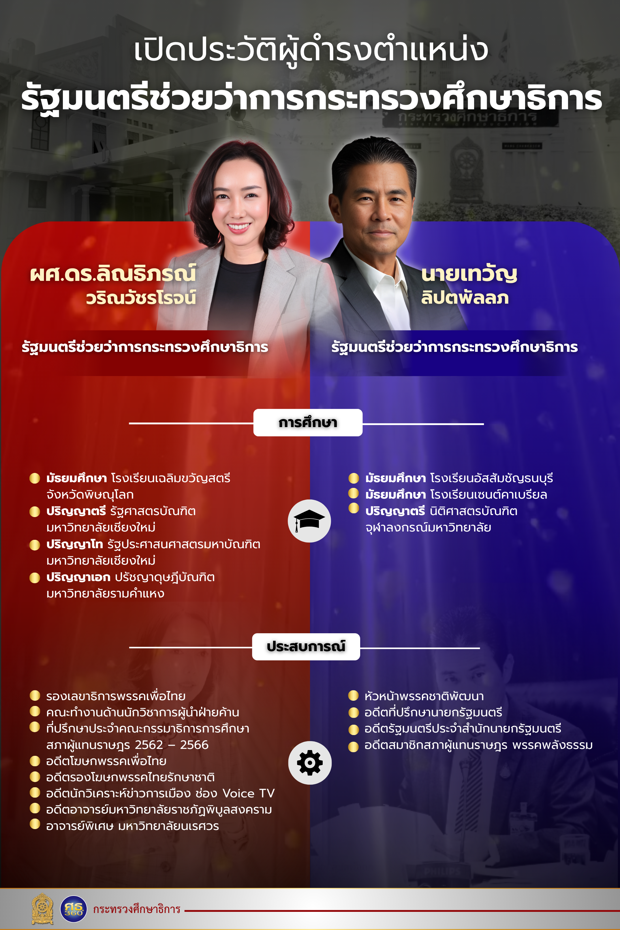 รู้จักกับรัฐมนตรีช่วยว่าการกระทรวงศึกษาธิการ “ผศ.ดร.ลิณธิภรณ์ วริณวัชรโรจน์” และ “เทวัญ ลิปตพัลลภ”