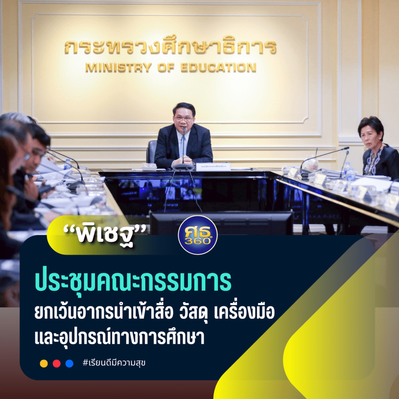 4 กรกฎาคม 2568 / นายพิเชฐ โพธิ์ภักดี รองปลัดกระทรวงศึกษาธิการ เป็นประธานการประชุมคณะกรรมการพิจารณายกเว้นอากรนำเข้าสื่อ วัสดุ เครื่องมือและอุปกรณ์ทางการศึกษา ครั้งที่ 1/2568 ณ ห้องประชุมจันทรเกษม อาคารราชวัลลภ กระทรวงศึกษาธิการ