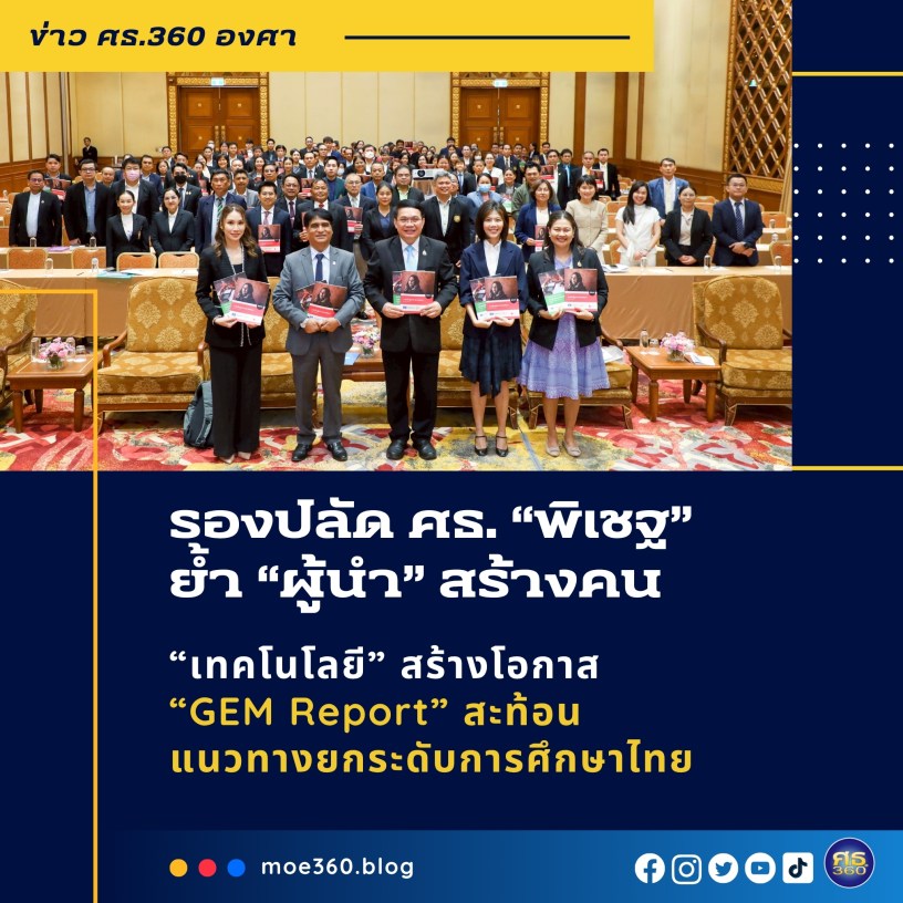 รองปลัด ศธ. กล่าวว่า รายงาน GEM ฉบับปี 2023 – 2024/25 ได้นำเสนอข้อมูลเกี่ยวกับการใช้เทคโนโลยีทางการศึกษาในประเทศต่าง ๆ ทั่วโลก โดยเฉพาะในภูมิภาคอาเซียน รวมถึงประเทศไทย ซึ่งแสดงให้เห็นถึงข้อดี ข้อจำกัดในการนำเทคโนโลยีมาใช้ในระบบการศึกษา ทุกท่านย่อมมีพื้นฐานความรู้และประสบการณ์ด้านเทคโนโลยีที่แตกต่างกัน ซึ่งเป็นสิ่งสะท้อนถึงความหลากหลายในองค์กร หากสามารถประยุกต์ใช้ความรู้ร่วมกับ “ภาวะผู้นำ” ไม่ว่าจะในระดับส่วนกลาง ระดับภูมิภาค หรือระดับสถานศึกษา ก็จะสามารถขับเคลื่อนการใช้เทคโนโลยีเพื่อการพัฒนาได้อย่างเป็นรูปธรรม