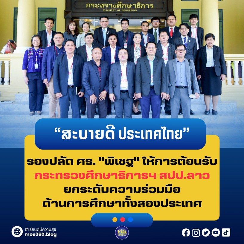 กระทรวงศึกษาธิการ – 16 กรกฎาคม 2568 / นายพิเชฐ โพธิ์ภักดี รองปลัดกระทรวงศึกษาธิการ ให้การต้อนรับ นายสีทอง สีขาว รักษาการอธิบดีกรมแผนการ กระทรวงศึกษาธิการและกีฬาแห่งสาธารณรัฐประชาธิปไตยประชาชนลาว และคณะ ในโอกาสเข้าเยี่ยมชมและศึกษาดูงาน แลกเปลี่ยนเรียนรู้ด้านนโยบายและยุทธศาสตร์การศึกษาของประเทศไทย โดยมีนายศิริศักดิ์ เหล่าจันขาม คณบดีวิทยาลัยการปกครองท้องถิ่น มหาวิทยาลัยขอนแก่น ผู้บริหารสำนักงานปลัดกระทรวงศึกษาธิการ และผู้แทนกรมส่งเสริมการเรียนรู้ เข้าร่วม ณ ห้องประชุมจันทรเกษม อาคารราชวัลลภ