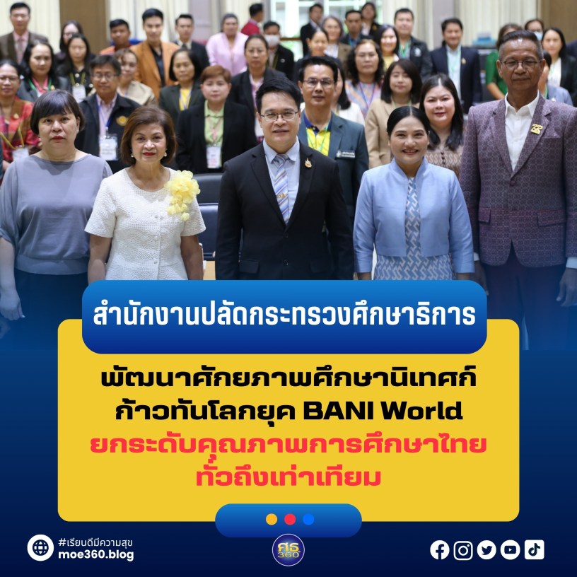 การนิเทศติดตามที่ดีต้องมีผลต่อการศึกษาของประเทศ และศึกษานิเทศก์ทุกท่านต้องพยายามปรับตัวให้ทันตามยุคเปลี่ยนผ่านจาก VUCA World สู่ BANI World ซึ่งเป็นกรอบความคิดที่พยายามอธิบายและพยากรณ์โลกยุคใหม่ รองรับความเปลี่ยนแปลง เพื่อความมั่นคงทางการศึกษาของประเทศ ด้วยการเสริมสร้างศักยภาพบุคลากรภายในองค์กร โดยเน้นย้ำความสำคัญของการปรับตัวให้ทันต่อการเปลี่ยนแปลงของโลกในยุค BANI World ซึ่งเป็นโลกที่เปราะบาง (Brittle) กังวล (Anxious) ไม่แน่นอน (Nonlinear) และคลุมเครือ (Incomprehensible) โดยบุคลากรทางการศึกษาต้องปรับ Mindset ให้เข้าใจตนเอง เข้าใจผู้อื่น และกล้าตัดสินใจ เพื่อขับเคลื่อนการศึกษาสู่อนาคต