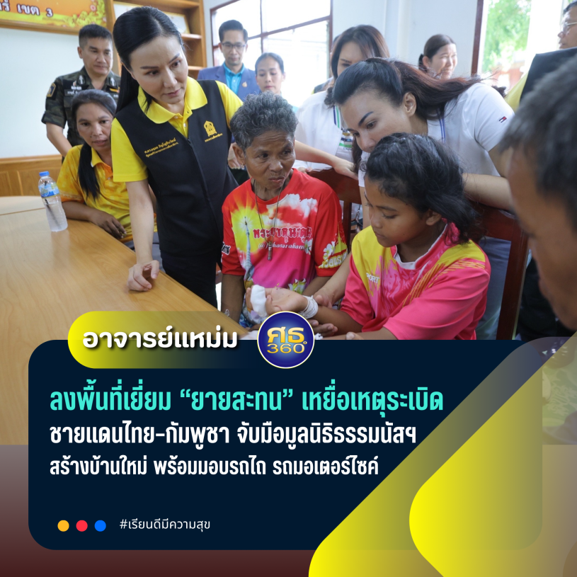 25 กรกฎาคม 2568 เวลา 14.30 น. – ศ.ดร.นฤมล ภิญโญสินวัฒน์ รัฐมนตรีว่าการกระทรวงศึกษาธิการ เปิดเผยว่า ตนได้ร่วมมือกับมูลนิธิธรรมนัส พรหมเผ่า เตรียมดำเนินการสร้างบ้านใหม่ให้แก่ครอบครัวของนางสะทน กันภัย อายุ 63 ปี ซึ่งได้รับความสูญเสียอย่างหนักจากเหตุระเบิดบริเวณชายแดนไทย–กัมพูชา โดยสูญเสียหลานชาย เด็กชายน้ำโขง อายุ 8 ขวบ และหลานสาว ด.ญ.กิตติยา บุญแต่ง หรือ “น้องน้ำค้าง” ได้รับบาดเจ็บสาหัส รวมถึงบ้านพักอาศัยที่ได้รับความเสียหายทั้งหมด