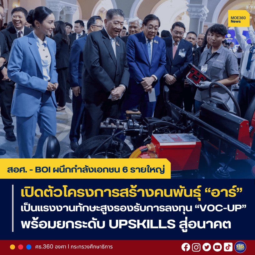 ในนามของกระทรวงศึกษา รู้สึกยินดียิ่งที่ร่วมเปิดโครงการความร่วมมือพัฒนากำลังคนอาชีวศึกษาเพื่อสร้างแรงงานทักษะสูงรองรับการลงทุน Vocational Education Upskill (VOC-UP: ยกระดับอาชีวะไทย อัปสกิลกำลังคนไทยสู่อนาคต) ซึ่งมีเป็นความร่วมมือระหว่างสำนักงานคณะกรรมการการอาชีวศึกษา (สอศ.) กระทรวงศึกษาธิการ สำนักงานคณะกรรมการส่งเสริมการลงทุน (BOI) และภาคเอกชน 6 ราย นับก้าวสำคัญของการศึกษา และการยกระดับการจัดอาชีวศึกษาให้สอดรับกับความเปลี่ยนแปลงของโลกอุตสาหกรรม ตามนโยบายของรัฐบาลในการส่งเสริมการเรียนสายอาชีพเพื่อการมีงานทำ