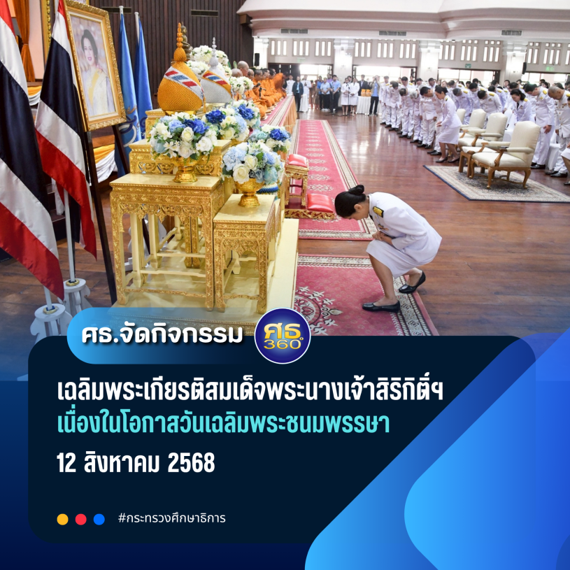 8 สิงหาคม 2568 – ศาสตราจารย์นฤมล ภิญโญสินวัฒน์ รัฐมนตรีว่าการกระทรวงศึกษาธิการ พร้อมด้วยผู้ช่วยศาสตราจารย์ลิณธภรณ์ วริณวัชรโรจน์ และนายเทวัญ ลิปตพัลลภ รัฐมนตรีช่วยว่าการกระทรวงศึกษาธิการ นำคณะผู้บริหาร ข้าราชการ บุคลากรในสังกัดและในกำกับกระทรวงศึกษาธิการ ร่วมพิธีเจริญพระพุทธมนต์ และทำบุญตักบาตรถวายพระสงฆ์และสามเณร 94 รูป เพื่อถวายเป็นพระราชกุศล เพื่อเฉลิมพระเกียรติสมเด็จพระนางเจ้าสิริกิติ์ พระบรมราชินีนาถ พระบรมราชชนนีพันปีหลวง เนื่องในโอกาสวันเฉลิมพระชนมพรรษา 12 สิงหาคม 2568 ณ หอประชุมคุรุสภา กระทรวงศึกษาธิการ