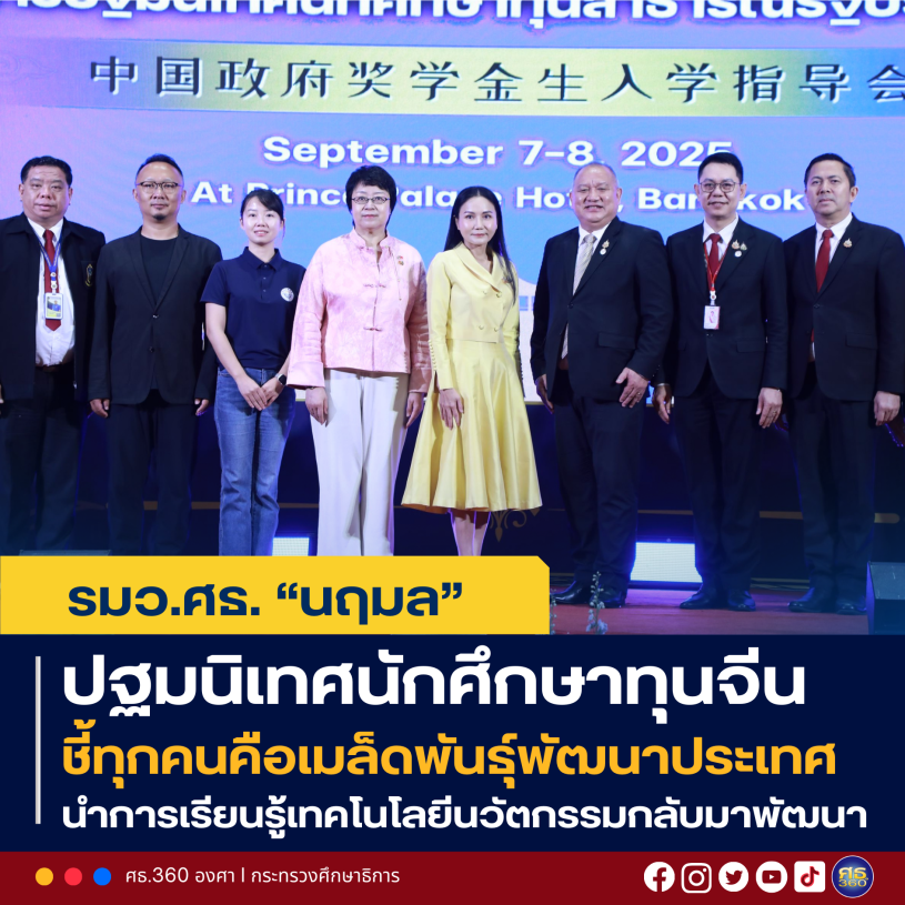 8 กันยายน 2568 – ศ.ดร.นฤมล ภิญโญสินวัฒน์ รัฐมนตรีว่าการกระทรวงศึกษาธิการ เป็นประธานเปิดโครงการปฐมนิเทศนักศึกษาทุนสาธารณรัฐประชาชนจีน โดยมี Ms. Xu Lan อุปทูตที่ปรึกษาฝ่ายการศึกษา สถานเอกอัครราชทูตสาธารณรัฐประชาชนจีน ประจำประเทศไทย นายยศพล เวณุโกเศศ เลขาธิการคณะกรรมการการอาชีวศึกษา ตลอดจนผู้บริหารจาก Nanjing Vocational College of Information Technology และ Liuzhou Polytechnic University ผู้บริหารสถานศึกษา คณะครูอาจารย์และนักเรียนนักศึกษา เข้าร่วม ณ โรงแรมปริ๊นซ์พาเลซ มหานาค กรุงเทพฯ