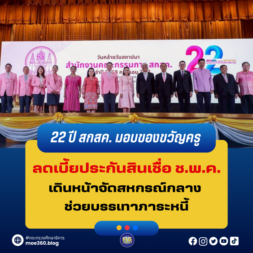 เนื่องในโอกาสครบรอบ 22 ปี การสถาปนา สกสค. วันนี้มีข่าวดีสำหรับสมาชิกโครงการสวัสดิการเงินกู้ ช.พ.ค. ที่เคยร้องขอให้ช่วยลดภาระค่าเบี้ยประกันสินเชื่อที่มีอัตราสูง ซึ่ง สกสค. ได้ผลักดันเรื่องนี้อย่างจริงจัง จนสามารถทำบันทึกข้อตกลงร่วมกับธนาคารออมสิน เมื่อวันที่ 26 กุมภาพันธ์ 2568 และเปิดรับการสรรหาผู้รับประกันคุ้มครองสินเชื่อ