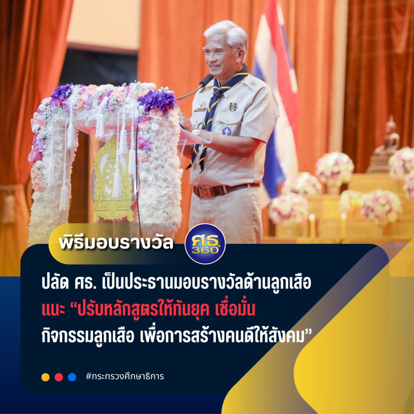 นอกจากนี้ ปลัดกระทรวงศึกษาธิการได้กล่าวต่ออีกว่า “พวกเราในที่นี้เป็นบุคคลที่สำคัญอย่างยิ่งในเรื่องของการพัฒนาเยาวชนให้เป็นคนที่มีวินัย มีความรับผิดชอบ พร้อมที่จะก้าวเป็นพลเมืองที่ดีของสังคมในอนาคต สอดคล้องกับนโยบายของรัฐมนตรีว่าการกระทรวงศึกษาธิการ ที่ต้องการพัฒนาเด็กและเยาวชนให้เป็นคนดีมีคุณธรรม ซึ่งในกระบวนการทางลูกเสือเป็นหนึ่งกิจกรรมที่สำคัญที่สุดที่จะช่วยปลูกฝังจิตสำนึกต่าง ๆ เหล่านั้น สำหรับผู้ได้รับรางวัลเพื่อเชิดชูเกียรติในครั้งนี้ เป็นเพราะท่านคือต้นแบบที่ดี และขอให้ขยายผลไปถึงกลุ่มของสถานศึกษาที่หาอยู่ใกล้เคียง เพื่อส่งเสริมเรื่องคุณธรรมจริยธรรมให้กับเด็กและเยาวชนต่อไปด้วย