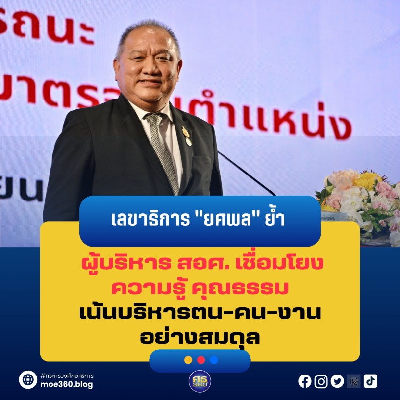 เลขาธิการ กอศ. กล่าวต่อไปว่า สิ่งสำคัญที่รองผู้อำนวยการผู้เข้าร่วมได้รับคือความรู้ ความเข้าใจ และการประยุกต์ใช้ โดยเฉพาะเรื่อง AI ควบคู่กับการมีคุณธรรมและจริยธรรม ขอฝากแนวคิดการบริหารตน ที่ต้องอาศัยทั้ง IQ ความรู้ EQ จิตใจ AQ การแก้ปัญหา MQ คุณธรรม และ PQ การดูแลสุขภาพ เพื่อเป็นรากฐานใน การบริหารคนและการบริหารงาน ได้อย่างสมดุล