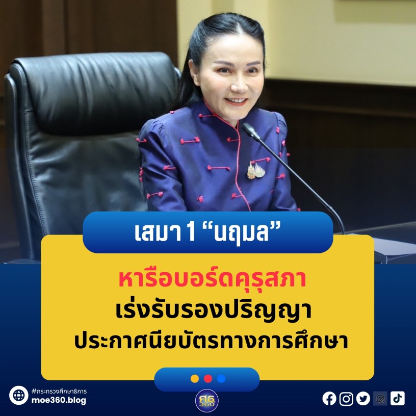 กระทรวงศึกษาธิการ – 1 ตุลาคม 2568 / ศ.ดร.นฤมล ภิญโญสินวัฒน์ รัฐมนตรีว่าการกระทรวงศึกษาธิการ เป็นประธานการประชุมคณะกรรมการคุรุสภา ครั้งที่ 10/2568 พร้อมด้วยนายองอาจ วงษ์ประยูร รัฐมนตรีช่วยว่าการกระทรวงศึกษาธิการ โดยมีนายสุเทพ แก่งสันเทียะ ปลัด ศธ. นายยศพล เวณุโกเศศ เลขาธิการ กอศ. นายพิเชฐ โพธิ์ภักดี เลขาธิการ กพฐ. นายมณฑล ภาคสุวรรณ์ เลขาธิการ กช. นายธนู ขวัญเดช เลขาธิการ ก.ค.ศ. นางอมลวรรณ วีระธรรมโม เลขาธิการ คส. ตลอดจนผู้บริหาร ศธ. ผู้ทรงคุณวุฒิ คณะกรรมการฯ เข้าร่วม ณ ห้องประชุมราชวัลลภ