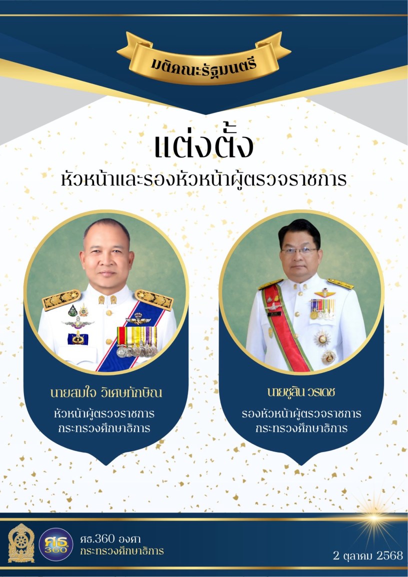 กระทรวงศึกษาธิการ มีคำสั่งแต่งตั้งหัวหน้าผู้ตรวจราชการและรองหัวหน้าผู้ตรวจราชการ