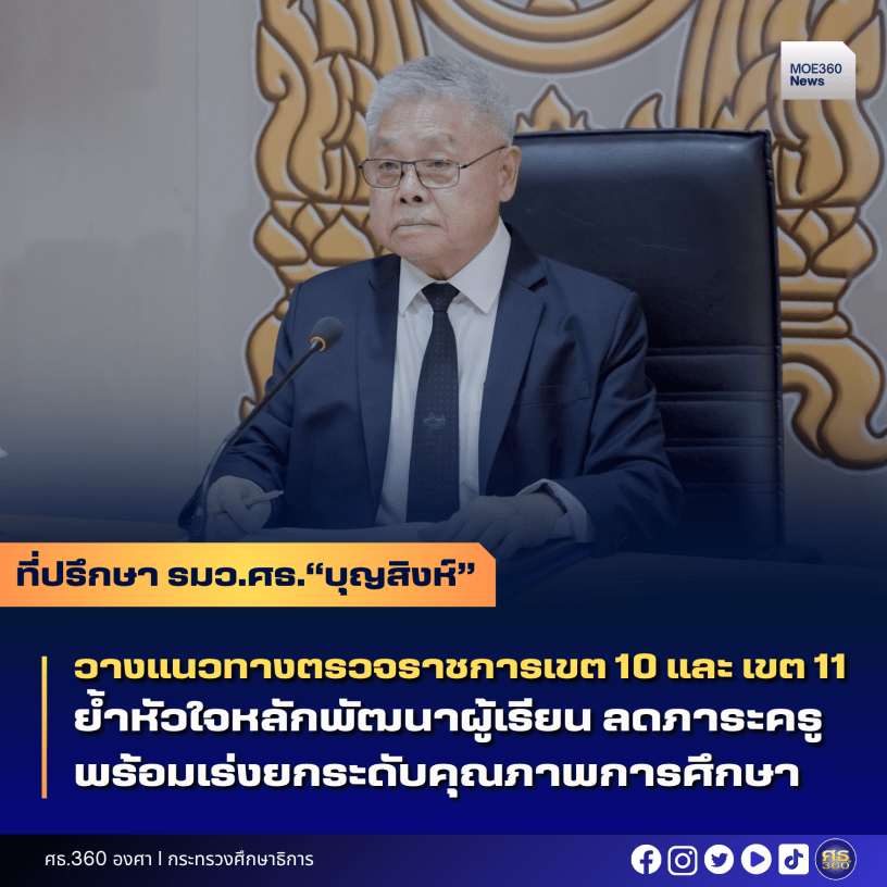กระทรวงศึกษาธิการ – 28 ตุลาคม 2568 / นายบุญสิงห์ วรินทร์รักษ์ ที่ปรึกษารัฐมนตรีว่าการกระทรวงศึกษาธิการ เป็นประธานการประชุมการตรวจราชการและติดตามประเมินผลการจัดการศึกษาของกระทรวงศึกษาธิการ ประจำปีงบประมาณ พ.ศ. 2569 เขตตรวจราชการที่ 11 (สกลนคร นครพนม มุกดาหาร) พร้อมบรรยายพิเศษ “การขับเคลื่อนนโยบายการศึกษาของรัฐมนตรีว่าการกระทรวงศึกษาธิการ (ศาสตราจารย์นฤมล ภิญโญสินวัฒน์)”