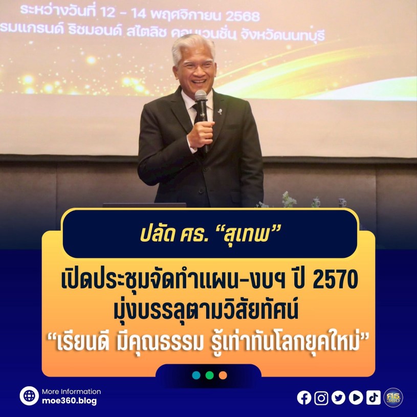 นายสุเทพ แก่งสันเทียะ ปลัดกระทรวงศึกษาธิการ เป็นประธานการประชุมเชิงปฏิบัติการจัดทำแผนปฏิบัติราชการและการจัดทำงบประมาณรายจ่าย ประจำปีงบประมาณ พ.ศ. 2570 ของสำนักงานปลัดกระทรวงศึกษาธิการ ณ โรงแรมแกรนด์ ริชมอนด์ สไตลิช คอนเวนชั่น จังหวัดนนทบุรี