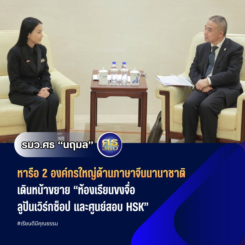 16 พฤศจิกายน 2568 / ศ.ดร.นฤมล ภิญโญสินวัฒน์ รัฐมนตรีว่าการกระทรวงศึกษาธิการ พร้อมด้วย ผู้บริหารกระทรวงศึกษาธิการ เข้าพบหารือกับนายจ้าว หลิงชัน (Mr. Zhao Lingshan) เลขาธิการมูลนิธิการศึกษาภาษาจีน นานาชาติ และนายจง อิงฮั่ว (Mr. Zhong Yinghua) ประธานสมาคมภาษาจีนนานาชาติ ณ กรุงปักกิ่ง สาธารณรัฐประชาชนจีน เพื่อกระชับความร่วมมือด้านการจัดการเรียนการสอนภาษาจีนระหว่างไทย–จีนอย่างรอบด้าน ทั้งในระดับโรงเรียน อาชีวศึกษา และสถาบันเอกชนของไทย