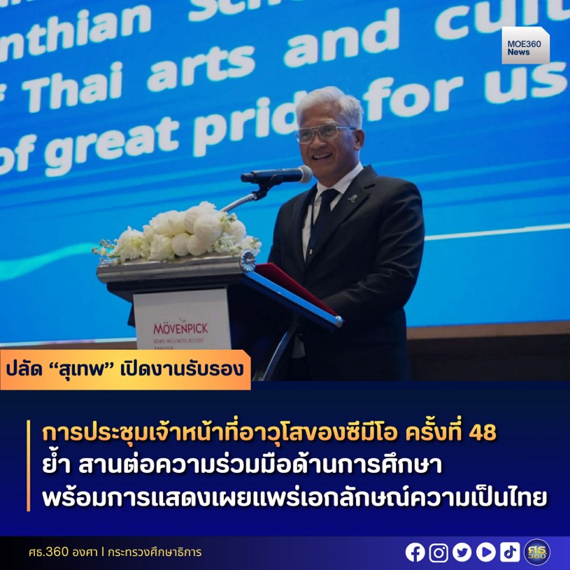 ปลัดกระทรวงศึกษาธิการ กล่าวตอนหนึ่งว่า “มีความยินดีและเป็นเกียรติอย่างยิ่งที่ได้ต้อนรับผู้แทนเข้าสู่งานเลี้ยงรับรองอันอบอุ่นครั้งนี้ นับเป็นโอกาสพิเศษที่ได้พบปะสานความสัมพันธ์อันดีต่อกันภายหลังจากการประชุมเจ้าหน้าที่อาวุโสอาเซียนเมื่อเดือนสิงหาคมที่ผ่านมา แม้ยังอยู่ในช่วงเวลาแห่งความสุญเสียอันใหญ่หลวงนี้ กระทรวงศึกษาธิการก็ยังคงมุ่งมั่นในการขับเคลื่อนภารกิจทางการศึกษาและสานต่อความร่วมมือกับประเทศสมาชิกซีมีโออย่างต่อเนื่อง”