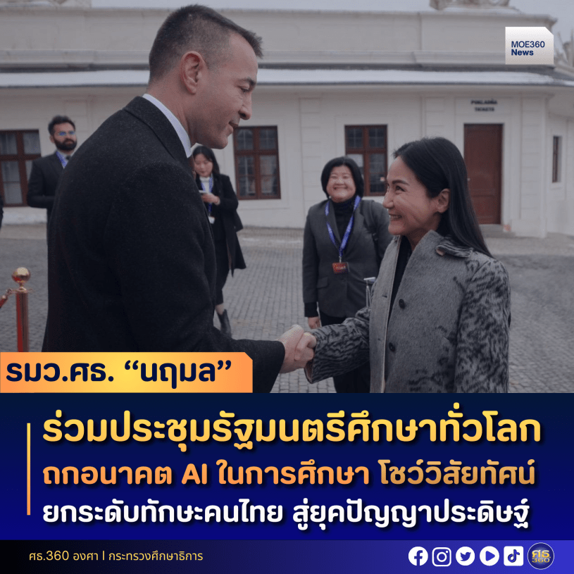 24 พฤศจิกายน 2568 – ศ.ดร.นฤมล ภิญโญสินวัฒน์ รัฐมนตรีว่าการกระทรวงศึกษาธิการ เข้าร่วมการประชุมรัฐมนตรีศึกษาว่าด้วยอนาคตของปัญญาประดิษฐ์ในการศึกษา (Meeting of Ministers of Education on the Future of AI in Education) ซึ่งเป็นส่วนหนึ่งของการประชุม OECD Global Forum on the Future of Education and Skills ณ Bratislava Castle กรุงบราติสลาวา สาธารณรัฐสโลวัก โดยมีผู้นำด้านการศึกษาจากหลายประเทศร่วมแลกเปลี่ยนมุมมองและกำหนดทิศทางการพัฒนาการศึกษาในยุคปัญญาประดิษฐ์