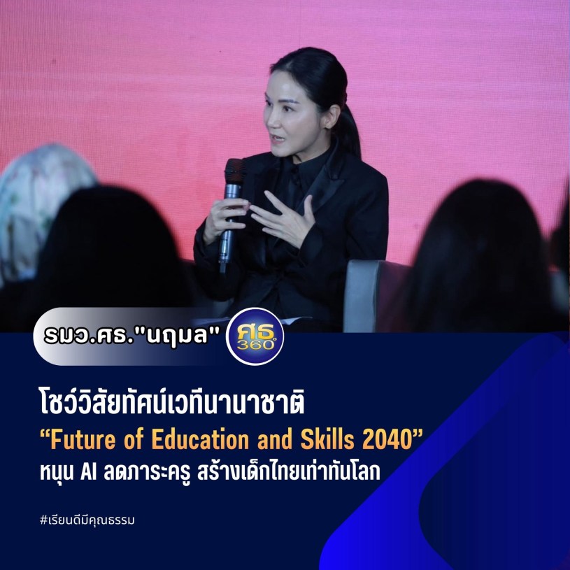 รมว.ศธ. ได้ร่วมนำเสนอวิสัยทัศน์และมุมมองเชิงนโยบายที่เกี่ยวข้องกับการพัฒนาสมรรถนะ ให้แก่ครูและนักเรียนให้มีความพร้อมสำหรับโลกแห่ง AI โดยเล็งเห็นว่า ทักษะการคิดวิเคราะห์ การแก้ไขปัญหา ความคิดสร้างสรรค์ การทำงานร่วมกัน การสื่อสาร การให้เหตุผลเชิงจริยธรรม และการจัดการตนเอง เป็นสมรรถนะที่สำคัญสำหรับการอยู่ในโลกที่มี AI เข้ามามีบทบาทในชีวิตประจำวันอย่างมาก นอกจากสมรรถนะข้างต้นแล้ว การรู้เท่าทัน AI การมีทักษะดิจิทัล การมีความรับผิดชอบในการใช้ AI และการมีจริยธรรม เป็นสิ่งที่ไม่อาจมองข้ามได้ ปัจจุบัน AI มีบทบาทในการเรียนรู้ตลอดชีวิต นักเรียนใช้ AI ทั้งที่โรงเรียนและที่บ้าน ดังนั้น จำเป็นอย่างยิ่งที่ต้องมีการพัฒนาผู้เรียนอย่างต่อเนื่อง รวมทั้งสร้างการมีส่วนร่วมกับผู้ปกครองและชุมชน