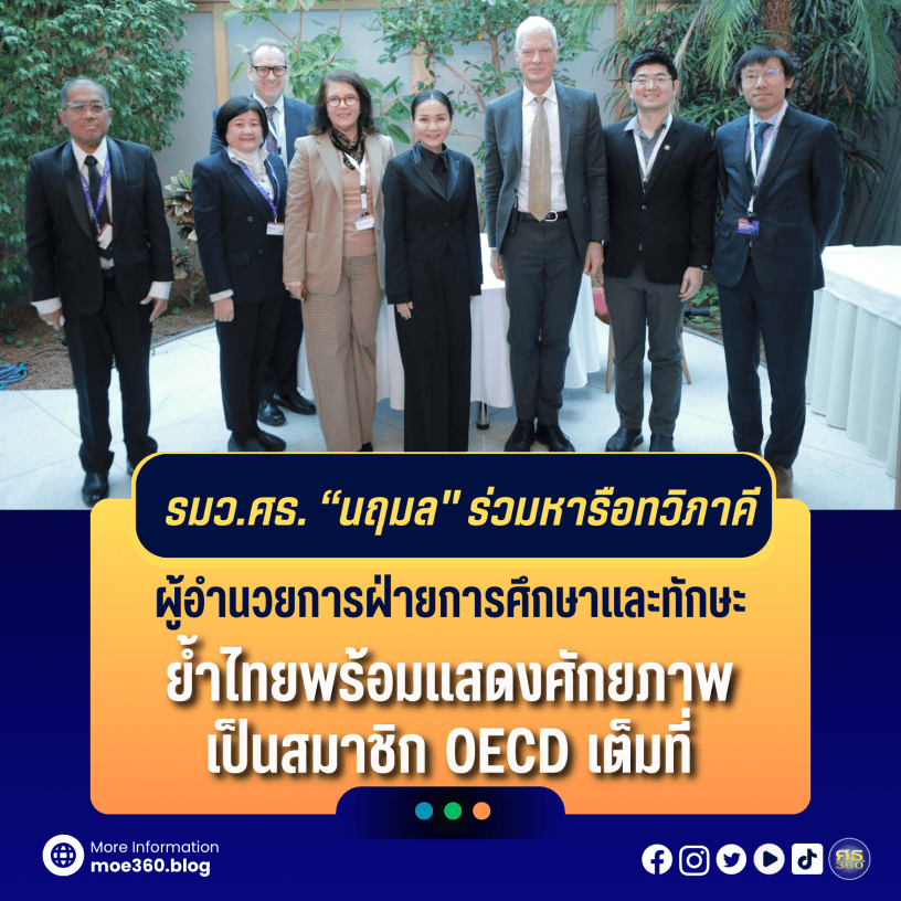 “OECD ชื่นชมการเตรียมความพร้อมของไทยทั้งในกระบวนการ Education Technical Review และการพัฒนาภาคการศึกษา ซึ่งอยู่ “บนเส้นทางที่ถูกต้อง” ไทยเป็นพันธมิตรที่มีความเข้มแข็ง พร้อมเปิดโอกาสให้ไทยส่งข้อมูลสำหรับจัดทำรายงาน OECD Digital Education Outlook รวมถึงทำงานร่วมกันในการพัฒนาแบบประเมิน AI Literacy ซึ่งอยู่ระหว่างดำเนินการ” ศ.ดร.นฤมล กล่าว