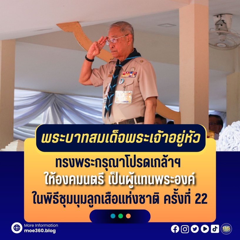 “การจัดงานชุมนุมลูกเสือแห่งชาติ ครั้งที่ 22 ปีนี้ เป็นโอกาสสำคัญที่กระทรวงศึกษาธิการและชาวลูกเสือไทยร่วมแสดงความจงรักภักดี และน้อมรำลึกในพระมหากรุณาธิคุณของพระบาทสมเด็จพระมงกุฎเกล้าเจ้าอยู่หัว “พระบิดาแห่งการลูกเสือไทย” ผู้ทรงสถาปนากิจการลูกเสือไทยตั้งแต่ปี พ.ศ. 2454 พระองค์ทรงเล็งเห็นคุณค่าการเรียนรู้นอกห้องเรียน และหลักสูตรลูกเสือที่ปลูกฝังระเบียบวินัย ความรักชาติ ความสามัคคี และจิตอาสา พร้อมทั้งทรงวางรากฐานกิจการลูกเสือไทย ทั้งการจัดตั้งกองลูกเสือ การพัฒนาหลักสูตร การฝึกผู้นำ และการขยายเครือข่ายทั่วประเทศ ด้วยพระราชวิสัยทัศน์อันกว้างไกล กิจการลูกเสือไทยจึงเติบโตอย่างมั่นคง เป็นที่ยอมรับในระดับนานาชาติ และยังคงเป็นพลังสำคัญในการบ่มเพาะเยาวชนให้เป็นพลเมืองดีและร่วมพัฒนาชาติสืบไป”