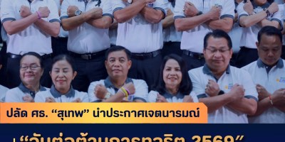 สป. ปลัด ศธ. “สุเทพ” นำ ประกาศเจตนารมณ์ “งานวันต่อต้านการทุจริต 2569″ภายใต้แนวคิด “กระทรวงศึกษาธิการไม่ทนต่อการทุจริต” (MOE Zero Tolerance) 9 ธ.ค. 2025 — 0 Comments