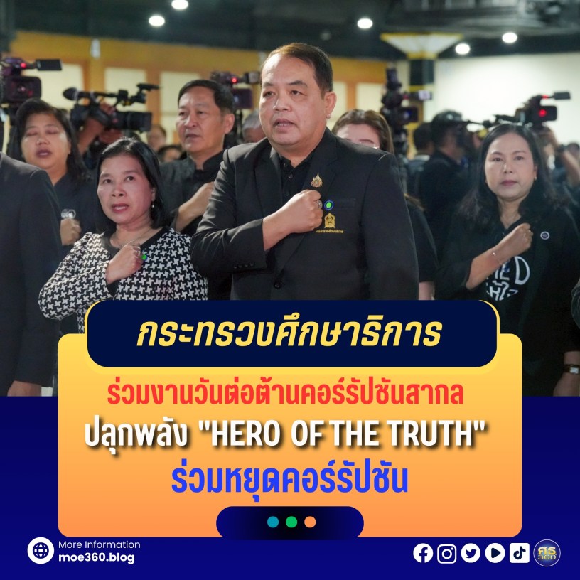 จังหวัดนนทบุรี – 9 ธันวาคม 2568 / ศาสตราจารย์นฤมล ภิญโญสินวัฒน์ รัฐมนตรีว่าการกระทรวงศึกษาธิการ มอบหมายให้ นายสุรศักดิ์ อินศรีไกร รองปลัดกระทรวงศึกษาธิการ เป็นผู้แทน ศธ. เข้าร่วมงานวันต่อต้านคอร์รัปชันสากล (ประเทศไทย) ประจำปี 2568 ภายใต้แนวคิด “HERO OF THE TRUTH” ร่วมหยุดคอร์รัปชัน ณ ฮอลล์ 4 ศูนย์การประชุม อิมแพ็ค ฟอรั่ม เมืองทองธานี