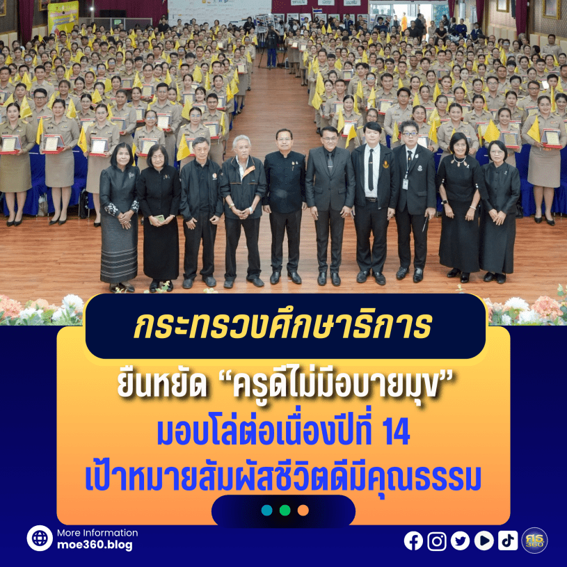 15 ธันวาคม 2568 – กระทรวงศึกษาธิการ จัดพิธีมอบโล่ประกาศเกียรติคุณครูดีไม่มีอบายมุข “ครูผู้อารี” รับมือโลกเดือดแต่ใจไม่เดือด ประจำปีการศึกษา 2568 (ปีที่ 14) โดยนายชาญวิทย์ มุนิกานนท์ พร้อมด้วย นายวีระ แข็งกสิการ รองปลัดกระทรวงศึกษาธิการ ร่วมมอบโล่ฯ ให้แก่ผู้เข้าร่วม จำนวน 333 คน ณ ห้องประชุมใกล้รุ่ง โรงเรียนราชวินิต