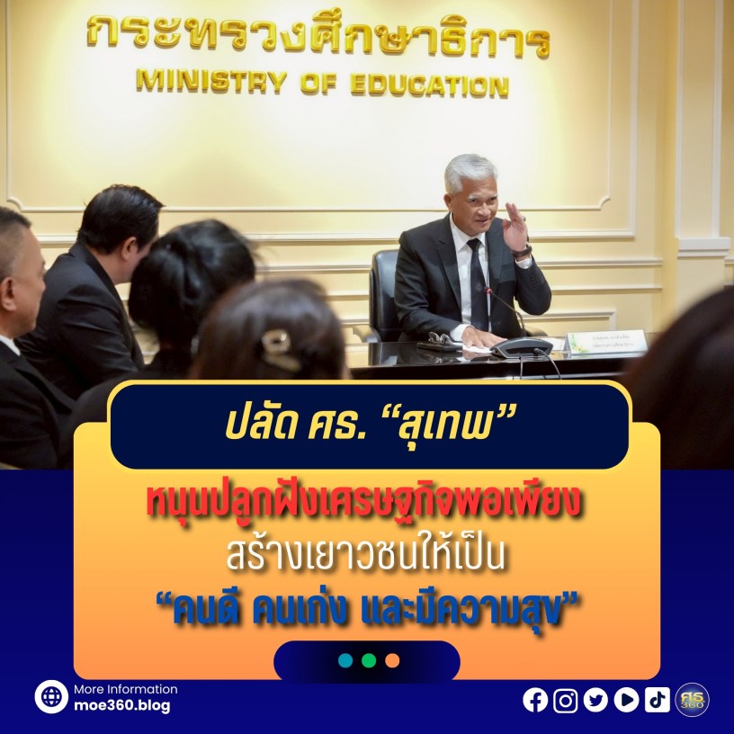 “หวังเป็นอย่างยิ่งว่ากระทรวงศึกษาธิการจะได้รับความร่วมมือจากทุกภาคส่วน ในการส่งเสริมและปลูกฝังหลักปรัชญาเศรษฐกิจพอเพียงให้แก่เยาวชนอย่างต่อเนื่อง ทั้งในระดับสถานศึกษา ครอบครัว และชุมชน เพื่อร่วมกันพัฒนาผู้เรียนให้มีคุณธรรม มีภูมิคุ้มกัน และสามารถปรับตัวได้อย่างเหมาะสมท่ามกลางการเปลี่ยนแปลงของโลกยุคใหม่ อันจะนำไปสู่การเติบโตเป็นพลเมืองที่มีคุณภาพ มีความรับผิดชอบต่อสังคม และเป็นกำลังสำคัญในการพัฒนาประเทศในอนาคต”