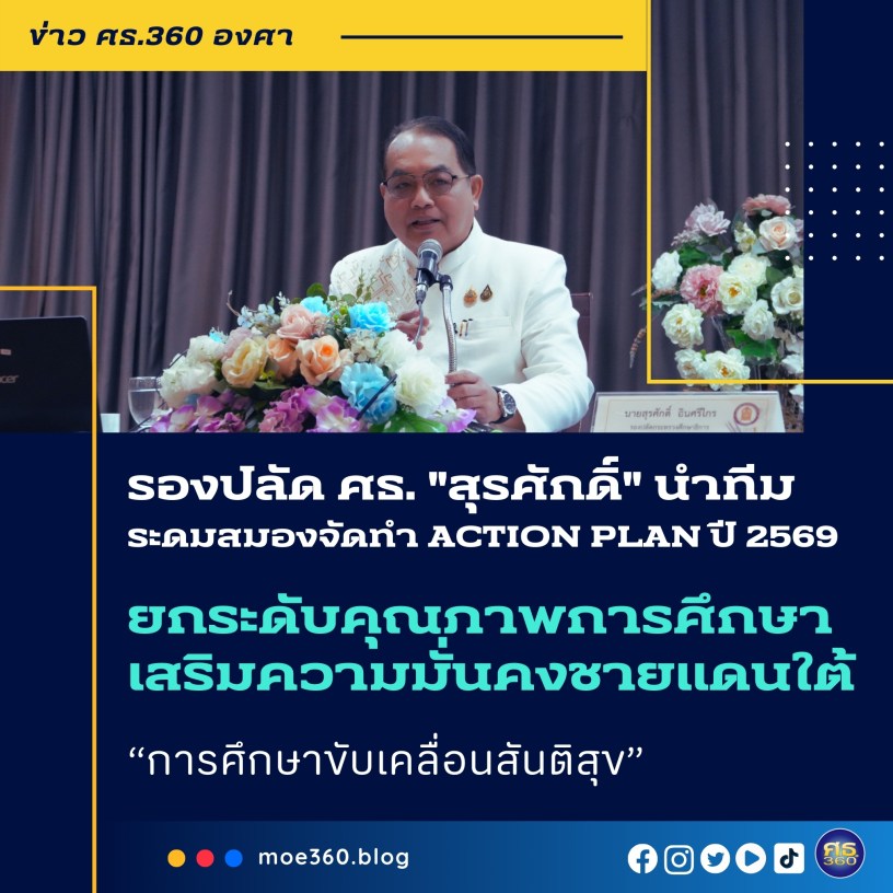 นายสุรศักดิ์ อินศรีไกร รองปลัดกระทรวงศึกษาธิการ กล่าวว่า การศึกษาในจังหวัดชายแดนภาคใต้ ต้องอาศัยพลังความร่วมมือและการบูรณาการอย่างแท้จริง “แผนมีความสำคัญต่อการขับเคลื่อนองค์กร“ การจัดทำแผนปฏิบัติการในครั้งนี้จึงไม่ใช่เพียงเอกสารเชิงนโยบาย แต่ต้องเป็นแผนที่นำไปสู่การปฏิบัติได้จริง ตอบโจทย์บริบทพื้นที่ 1 นโยบาย หลากหลายการปฏิบัติ เพื่อให้บรรลุเป้าหมายสู่ความสำเร็จของการจัดการศึกษา นักวางแผนต้องวางแผนให้ตอบโจทย์สอดคล้องกับยุทธศาสตร์ชาติ และสร้างผลลัพธ์ที่ประชาชนสัมผัสได้ โดยเฉพาะการยกระดับคุณภาพชีวิตให้ “อยู่ดี กินดี และมีความสุข” อย่างยั่งยืน