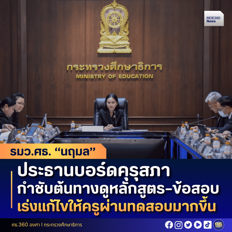 เป็นประธานการประชุมคณะกรรมการคุรุสภา ครั้งที่ 13/2568 โดยมี นายสุเทพ แก่งสันเทียะ ปลัด ศธ., นายประวิต เอราวรรณ์ เลขาธิการ สกศ., นายนายยศพล เวณุโกเศศ เลขาธิการ กอศ., นายธนูขวัญเดช เลขาธิการ ก.ค.ศ., ผู้บริหาร คณะกรรมการคุรุสภา และ ผศ.ดร.อมลวรรณ วีระธรรมโม เลขาธิการคุรุสภา กรรมการและเลขานุการ เข้าร่วม ณ ห้องราชวัลลภ กระทรวงศึกษาธิการ