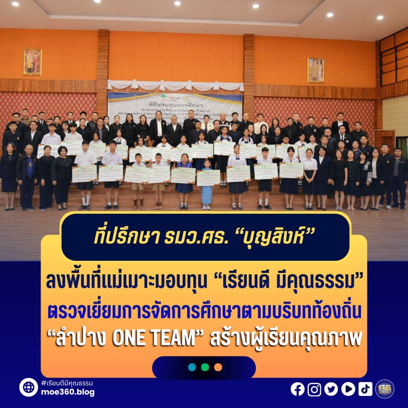 26 ธันวาคม 2568 – นายบุญสิงห์ วรินทร์รักษ์ ที่ปรึกษารัฐมนตรีว่าการกระทรวงศึกษาธิการ เป็นประธานในพิธีมอบทุนการศึกษาอำเภอแม่เมาะ ปีการศึกษา 2568 สนับสนุนงบประมาณโดยกองทุนพัฒนาไฟฟ้าโรงไฟฟ้าแม่เมาะจังหวัดลำปางโครงการทุนการศึกษาอำเภอแม่เมาะ ปี 2568 ดำเนินการโดยสำนักงานศึกษาธิการจังหวัดลำปาง โดยนายสุรศักดิ์ อินศรีไกร รองปลัดกระทรวงศึกษาธิการ ผู้บริหารครูและตัวแทนนักเรียน เข้าร่วม ณ หอประชุมที่ว่าการอำเภอแม่เมาะ จังหวัดลำปาง